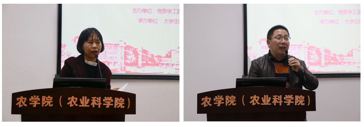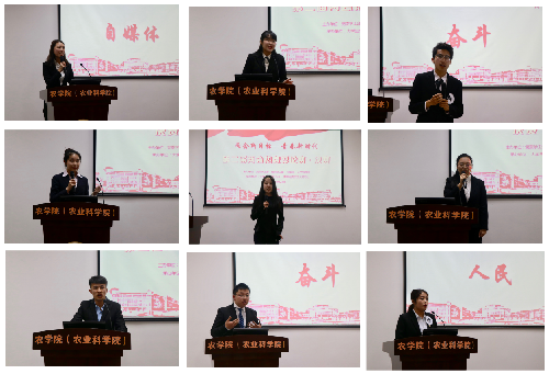 本次决赛邀请马克思主义学院武春芳老师、党委宣传部文化建设秘书刘玉峰老师、党委组织部组织秘书唐勇老师、校团委副书记刘业兴老师、党委研工部教育管理科科长胡凡老师、党委学工部郭紫玥老师、农学院学工秘书彭小凤老师担任评委。