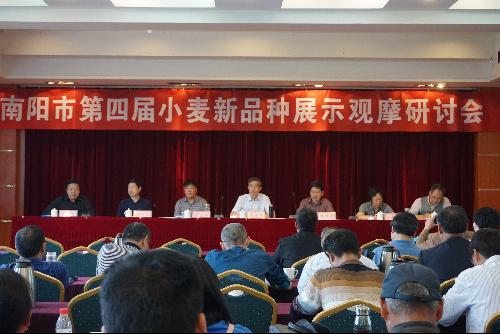 5月8日,由西北农林科技大学南阳小麦试验示范站主办、南阳市种子管理站和南阳市农业科学院联合承办的“2018年小麦新品种(系)现场观摩会”在南阳国际饭店召开。西北农林科技大学副校长钱永华、农学院院长单卫星、扶贫工作办公室副主任王增信、南阳市农业局副局长李玉生、南阳市农业科学院副院长俞行简、试验站首席科学家王成社以及24位西农小麦专家教授出席了观摩会。来自河南、江苏、安徽、山东和陕西等省市的种子企业代表、农技推广部门负责人和技术人员、种植大户等150余人参加了会议,会议由南阳市种子管理站站长赵群友主持。
