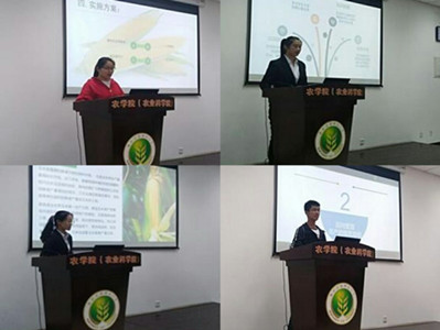 答辩开始后,参赛各组负责人分别从种植计划、施肥方案、活动组织、田间管理、预期成果等方面进行了10分钟的PPT汇报。最终庞津娟组、于乃彬组以及韩爱萍组因各自的优势申报成功,6月初将在各自指导老师的指导中开始长达半年的玉米高产竞赛。