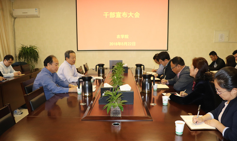 会上,校党委组织部部长陈玉林宣读了校党委对学院党委书记的任免决定:学校正式任命张海成同志为农学院党委书记。