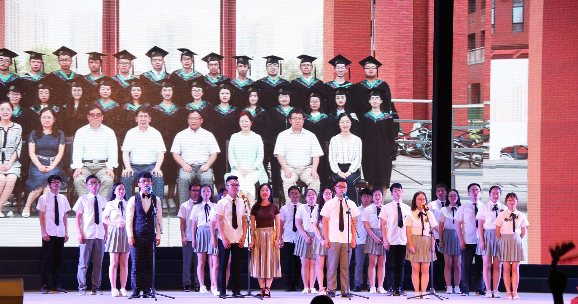 随后而来的便是一场场同学们精心准备的节目。热烈的开场舞与街舞表演让整个会场的氛围迅速攀升;研究生李子雄、刘益宏以其深厚的功底演绎的相声《歪唱太平歌词》赢得了观众们的阵阵掌声;“江和湖波浪滔滔,看我浪迹多逍遥”,舞蹈《大笑江湖》则以一种轻松又霸气的气场深深地吸引着同学们;小品《上课请关机》贴近生活,再一次引爆笑点;而合唱团的《告别时刻》使毕业的离别伤感之情充斥全场,各毕业班班主任的寄语无不体现着其对学生的那份爱与关怀;16级主席团的诗朗诵《今天我们毕业了》,则用一种怀念与向往的姿态诠释了毕业这字眼;晚会在各个毕业班与班主任的合唱中落下帷幕。