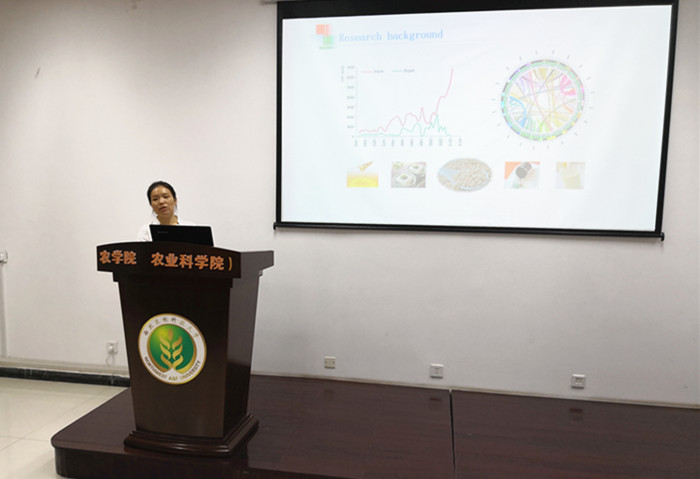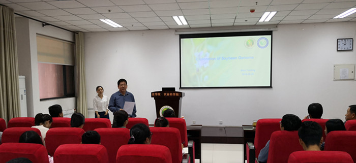 2018年9月21日上午10点,中国科学院遗传与发育生物学研究所申妍婷博士关于“Exploration of Soybean Genome”的报告会在农学院216会议室举行。报告会由农学院院长单卫星教授主持,我院吉万全、胡胜武、王中华、陈新宏、马翎健及韩德俊等教授出席报告会,此次报告会吸引了近100名研究生参加。