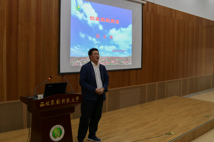9月25日下午,农学院特邀陕西杨凌伟隆农业科技有限公司董事长、西北农林科技大学杰出校友徐永林先生在农科大楼阶梯教室作“农业创业实践探索”专题报告会。农学院2016级全体本科生聆听报告。2016级辅导员沙影主持。