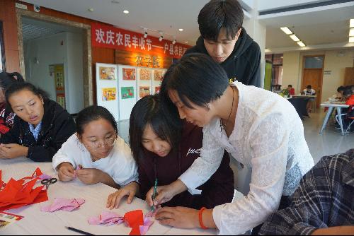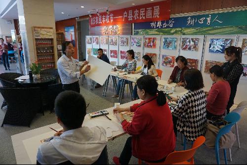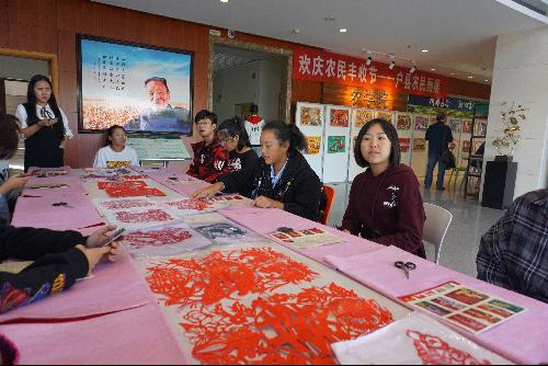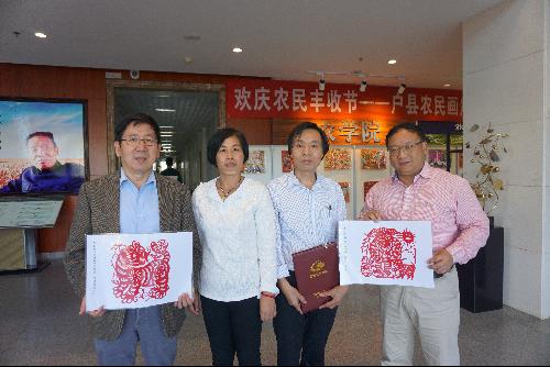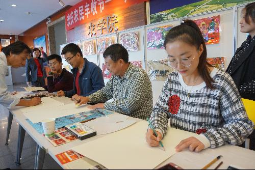 为欢庆首届农民丰收节,了解农民画的相关知识,促进教职工之间的交流,学院于9月29日在学院二楼大厅举办户县农民画展,并邀请高级工艺美术师王乃良老师和朱丹红老师进行现场农民画培训。