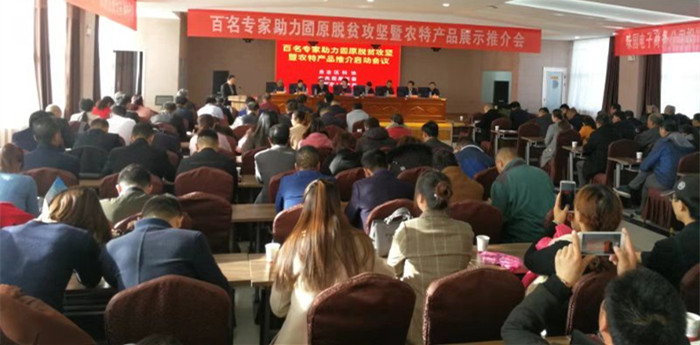 百名专家助力脱贫攻坚行动暨农特产品展示推介会以扶贫为主题,以扶智为主线,以励志为目标,积极响应和推进2018年全国科技助力精准扶贫现场会的安排部署,突出“精准、务实、高效”原则,特邀陕西泾阳县云阳镇的领导及电商团队、广州迈上品牌策划有限公司、陕西胖农生态农业科技有限公司、陕西绿歌养生文化传播有限公司等企业与本地企业分别签订战略合作协议。宁夏自治区科协副主席张晓玲、自治区老科协会长王冰、固原市委常委、宣传部长王正儒、固原市副市长周文贵、宁夏师范学院院长助理、科协主席徐燕、自治区科协科普部部长赵文象、自治区科协少数民族科普队队长李勇、西安电商协会会长赵其森及固原市相关职能部门负责同志出席活动,并参观了京东固原扶贫馆线下体验馆。