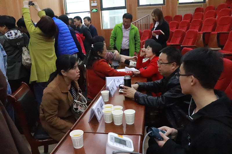 随后,教职工和医院医师展开交流,现场答疑并进行一对一的健康指导,为参会职工测量血压。