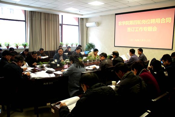 在会上,张海成书记就第四轮岗位聘任签订工作整体安排进行了安排部署,就学院第四轮岗位聘任合同的指导性原则和合同的有关细节进行了解读和说明,重点介绍了团队合同签订的有关内容。各课题组负责人对各团队的合同进行了审阅,对团队签订的合同的有关事项进行了讨论和交流,并就有关事项提出了建议和意见。学院及时将有关意见进行了整理,对合同的有关条款及时进行了完善和补充