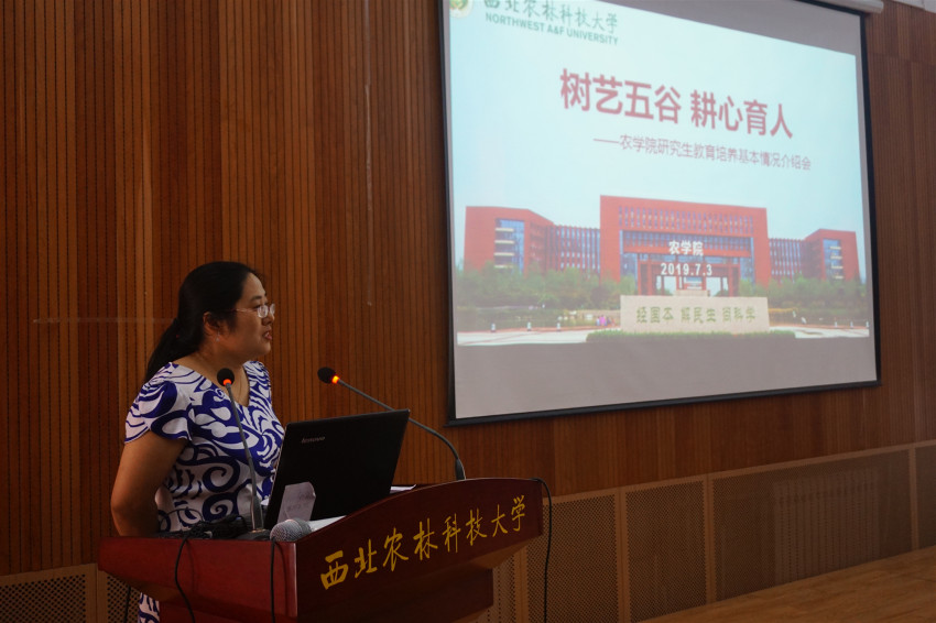 副院长韩娟就学生较关心的硕士研究生招生的两种方式进行介绍,通过对2019年推免遴选办法和统考情况的讲解使学生对保研、考研相关流程做到心中有数;通过对奖助体系的详细罗列,使学生从思想上甩掉了学习生活中花销大的包袱;通过对就业发展方向的介绍,使学生对未来的出处有了更清晰的认识。另外,韩娟老师就农学院第一届本科生海外提升计划项目予以详细介绍,鼓励更多优秀的同学积极报考我校。
