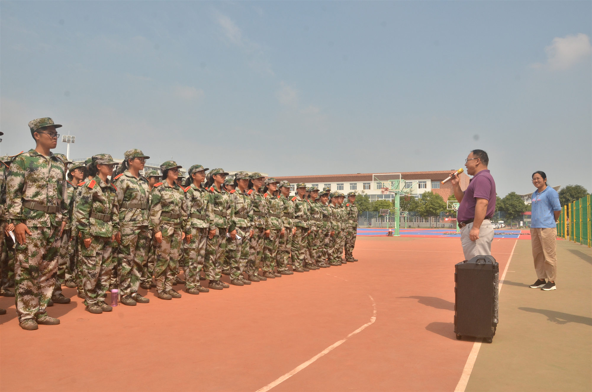 张海成代表学院对承训教官和全体参训新生表达了真切的关心和祝福,并对同学们认真刻苦、不畏艰难、坚持训练的精神予以充分肯定。他通过向新生讲述自建校以来我校为国家粮食安全、生态安全、水安全等方面所做出的卓越贡献,带领同学们思考两个一百年的奋斗目标与自身的关系,进而引导学生认识自身肩负的重担和使命,鼓励同学们努力学习、努力成长、努力奋斗、努力实现,努力成为中华民族伟大复兴历史进程中的创造者。“巍巍乎高岗,巍巍乎高岗,乃在后稷,公刘文武,周公之故乡”张海成通过引用老校歌歌词,告诉同学们这片厚重的土地为大家提供了最优越的科研条件和平台,希望大家在这里敞开胸怀,全面成长,能够成为更优秀更有担当的西农人,同时希望同学们认真对待军训这大学第一课,通过军事训练历练意志,加强纪律。张海成带领全体2019级新生一同高呼“团结一心凌云志,敢为人先农学人”这一口号,声音响彻整个篮球场,也谨记每位新同学的心中。