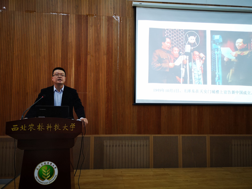 9月18日,9.18事变88周年纪念日,农学院特邀“不忘初心,牢记使命--庆祝中华人民共和国成立70周年”宣讲团的杨鹏教授,为学院全体教职工及学生党团支部班子成员开展“共和国的足迹”主题报告。农学院党委副书记吴清华主持。
