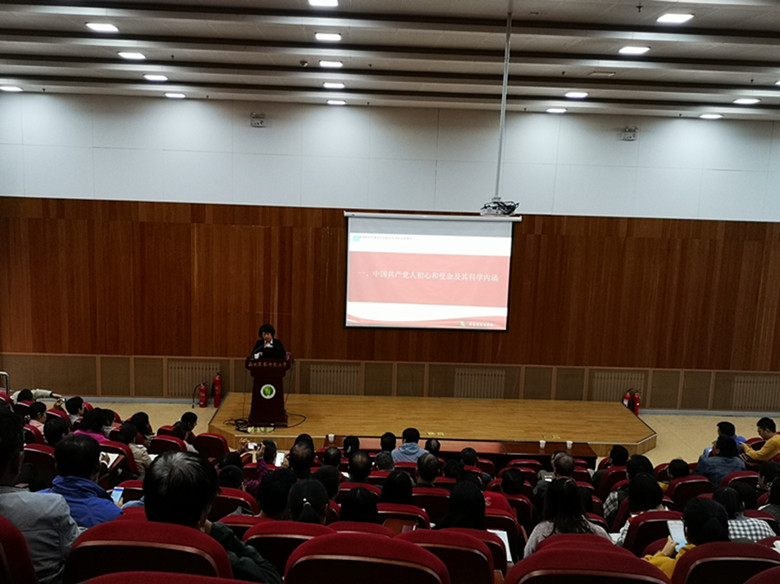 李晓娥结合身边的实例,通过朴素又不乏幽默的言语将原本晦涩枯燥的政治理论知识,生动活泼的呈现给师生。她首先从中国共产党人的初心和使命的科学内涵破题,为全国人民谋幸福,为中华民族谋复兴,这是中国共产党人的精神标识、政治价值、政治誓言和事业。其次通过对国民党亡国、苏联解体及中国共产党永葆青春的经验教训进行了剖析和对比,让大家深彻感受初心和使命的极端重要性,关乎到党的生存死亡。最后讲述了中国共产党新时代的历史使命,伟大复兴的中国梦,必须进行伟大斗争、建设伟大工程、推进伟大事业的三个伟大工程,激励全体教职工坚定政治方向,吸取砥砺前行的动力源泉,打好网络意识形态保卫战,为我校加快建设世界一流农业大学,为实现中华民族伟大复兴的中国梦而努力奋斗!