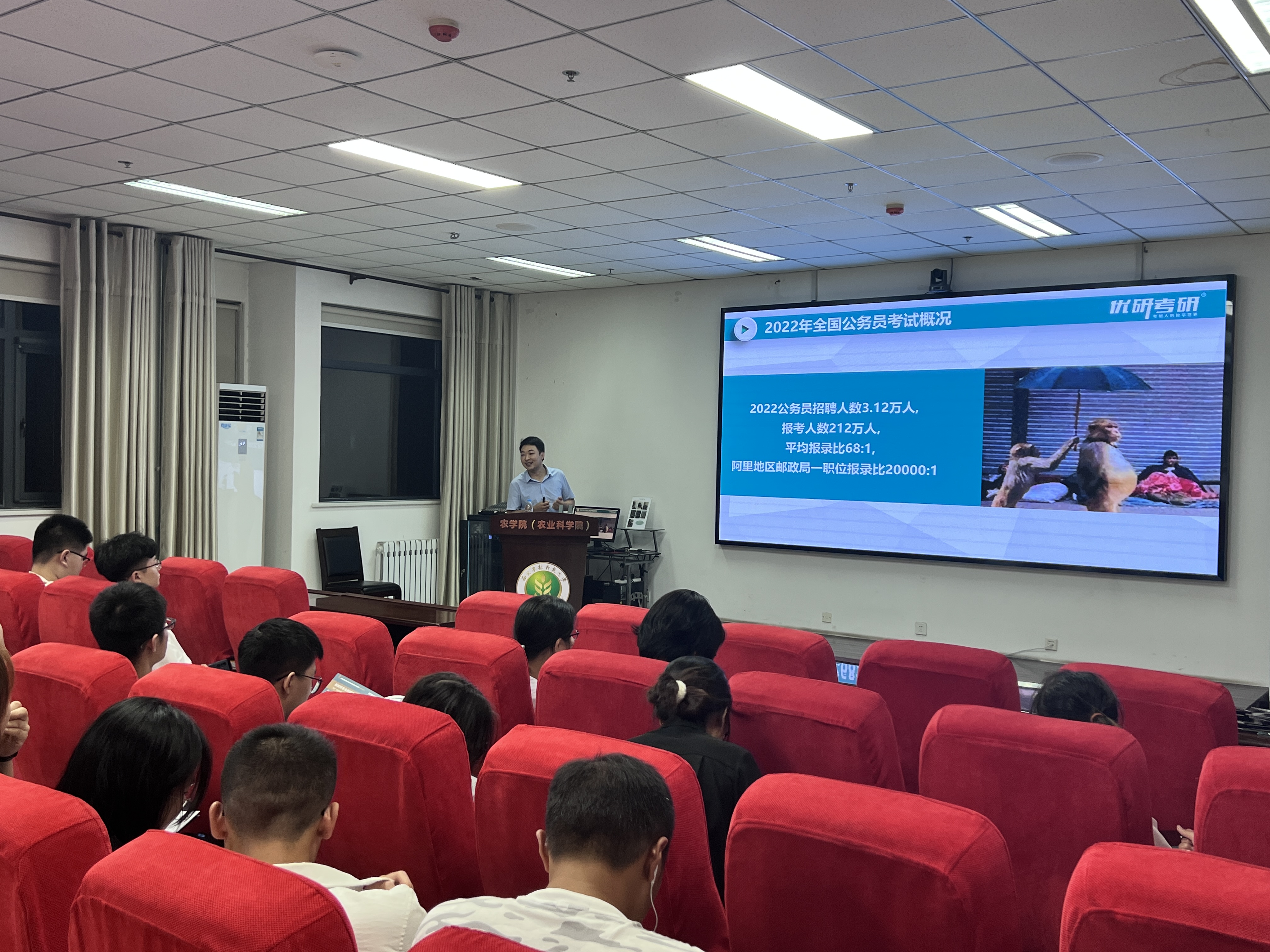 为进一步帮助我院2021级本科生了解考研现状,解决考研困惑,增强专业信心,9月18日,农学院邀请优研考研机构刘洋老师作主题为“2025考研农学类专场考情分析—从小白到学霸的蜕变”专场报告,从多个方面为学生提供宝贵的备考经验与指导。