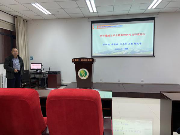 2020年11月24日下午,旱农一支部牵头,联合旱农二支部组织举办了“问策粮安 献礼百年”专题报告会。本次报告邀请了中国科学院水土保持所“黄土高原土壤侵蚀与旱地农业国家重点实验室”常务副主任李世清研究员。李世清老师以“旱作覆膜玉米水氮高效利用及环境效应”为题,围绕国家粮食安全,从旱地玉米高产高效栽培体系构建及增产机理、覆膜玉米的根层氮调控和覆膜玉米的可持续性评价等方面,为我们介绍了所在团队在旱地覆膜作物水氮协同高效利用方面多年的研究进展与成果,报告内容为支部师生专业研究开拓了新的思路。旱农一支部、二支部70余名师生参加报告会,会后,师生表示受益匪浅。