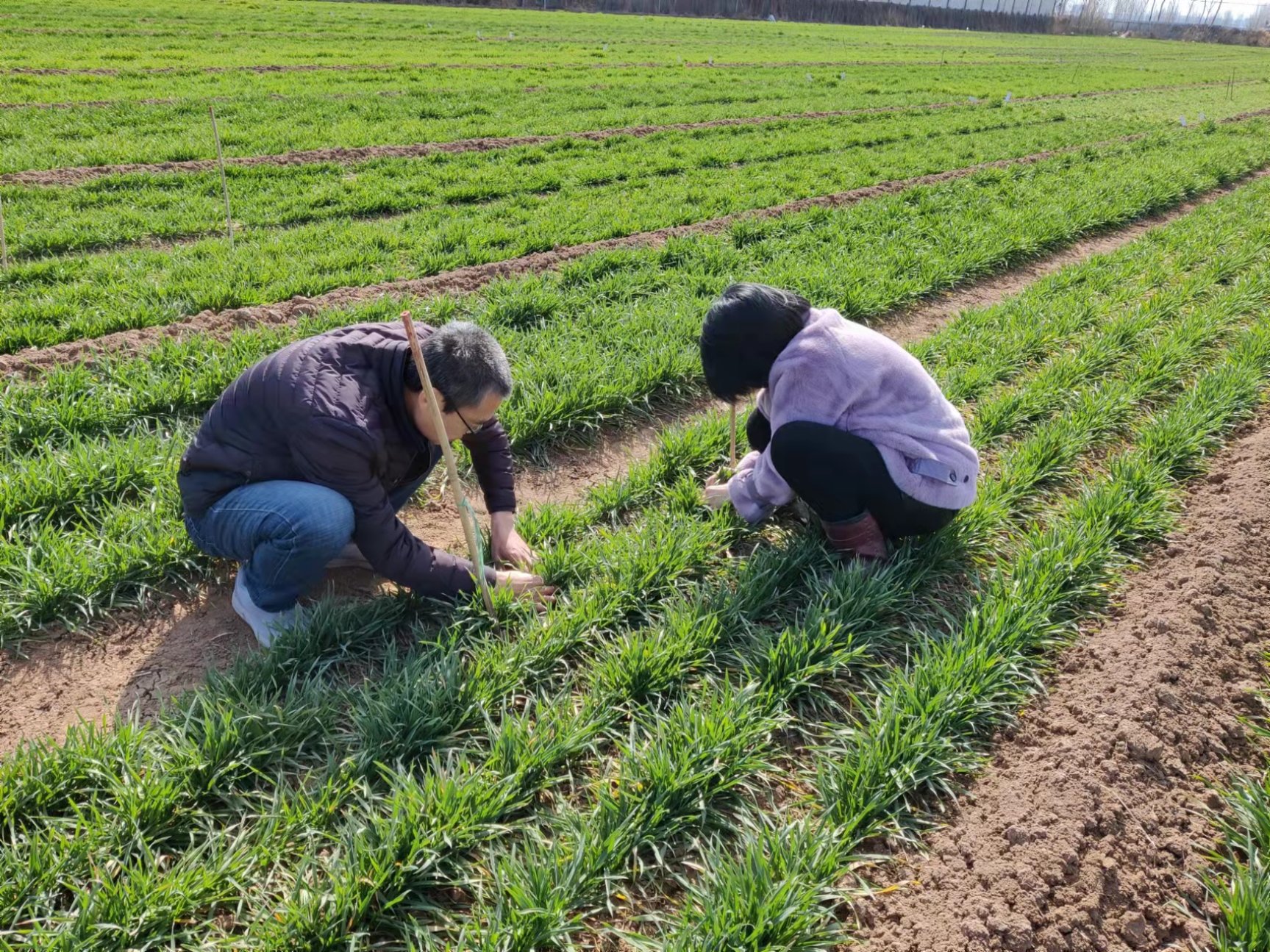 阳春3月,在西北农林科技大学安阳现代农业展示示范基地,科研人员正在对试验基地近30个小麦新品种及39个高代材料进行田间苗期数据调查。