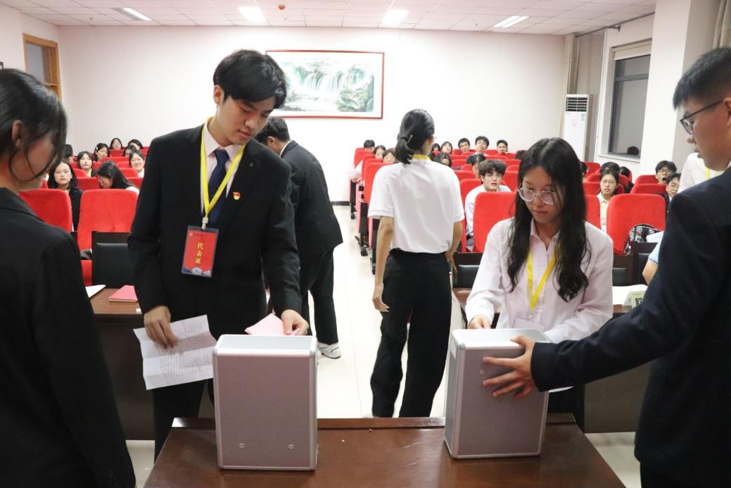 大会第二阶段,学院2023-2024年学生会主席团成员李佳权作了题为《九秩谱华章,奋斗传炬火,在推动特色学生会工作中谱写青春篇章》的工作报告。大会审议通过《关于通过开云官方在线入口2023-2024年学生会工作报告的决议》、《关于通过<开云官方在线入口学生会章程(修正案)>的决议》,同时审议通过选举办法,总监票人、监票人、总计票人和计票人名单,主席团候选人名单,无异议后,与会代表以无记名投票方式进行选举,选举产生了新一届的学生会主席团成员。