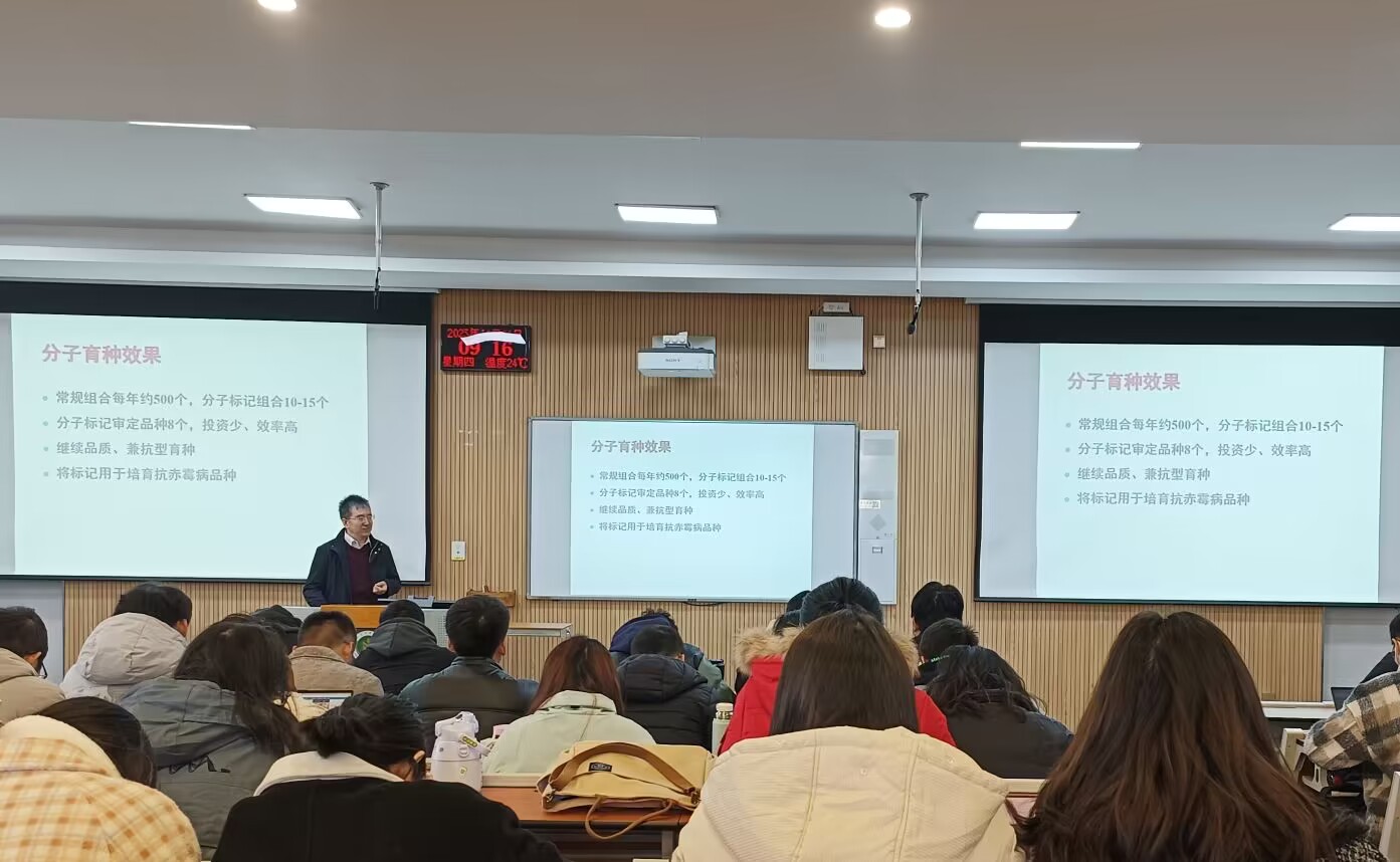 为进一步加强研究生对学科前沿知识的了解,增强专业自信,学院特邀请中国农业科学院作物科学研究所、国际玉米小麦改良中心杰出科学家何中虎研究员于11月16日上午来校为广大师生做学术报告,报告会由张睿研究员主持,学院硕博研究生及科教人员200余人现场参会并做交流。