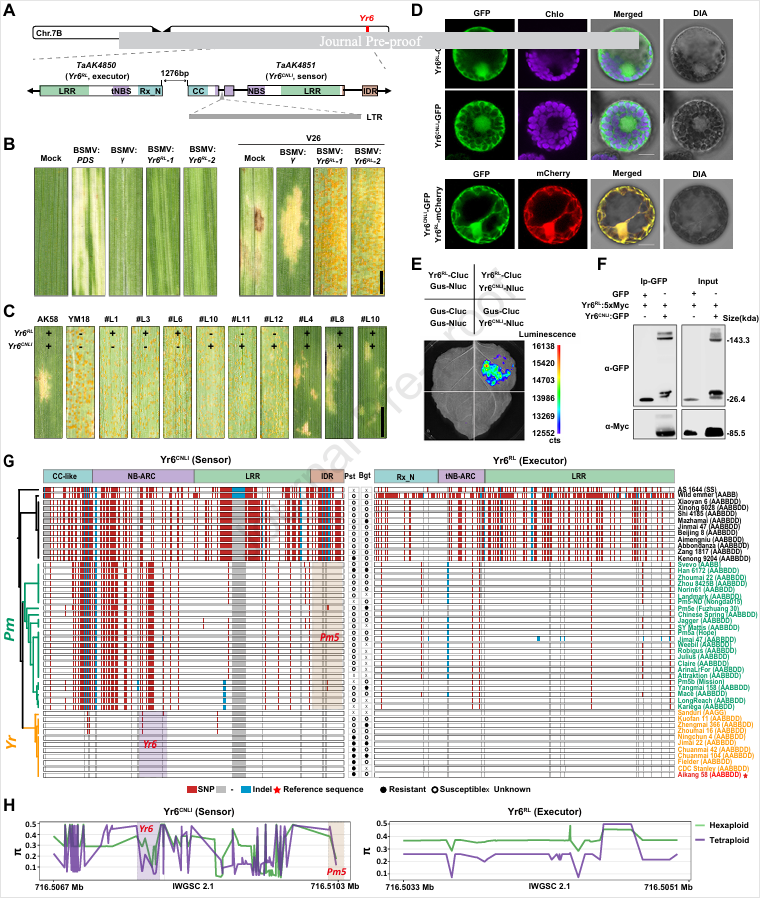 近日,开云官方在线入口小麦抗病团队在国际期刊《Plant Communications》发表题为“Wheat Yr6 locus allelic to Pm5 harboring an NLR gene pair confers stripe rust resistance”研究论文。该研究为利用成对NLR蛋白防控小麦多种病害提供了遗传、分子及进化层面的理论指导。