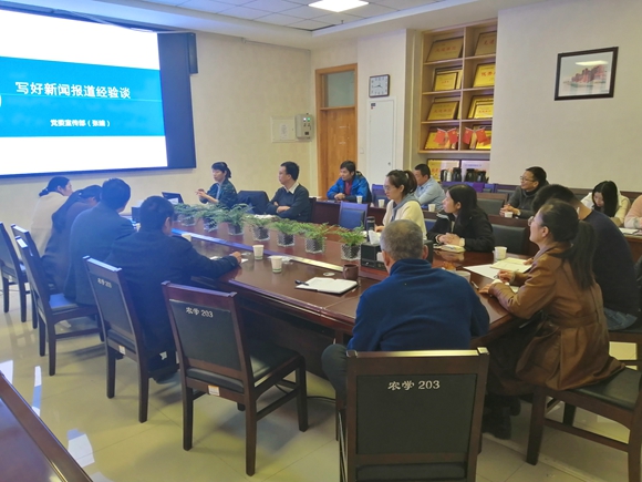 11月22日,为了加强学院新闻宣传工作,提高广大师生的新闻宣传写作能力和水平,提高办公室人员的综合素质,学院特邀请宣传部专业记者王学峰、张晴进行新闻摄影和消息写作专题培训。讲座由副院长胡宝仓主持,办公室全体人员、团委宣传部相关人员约20人参加了讲座。